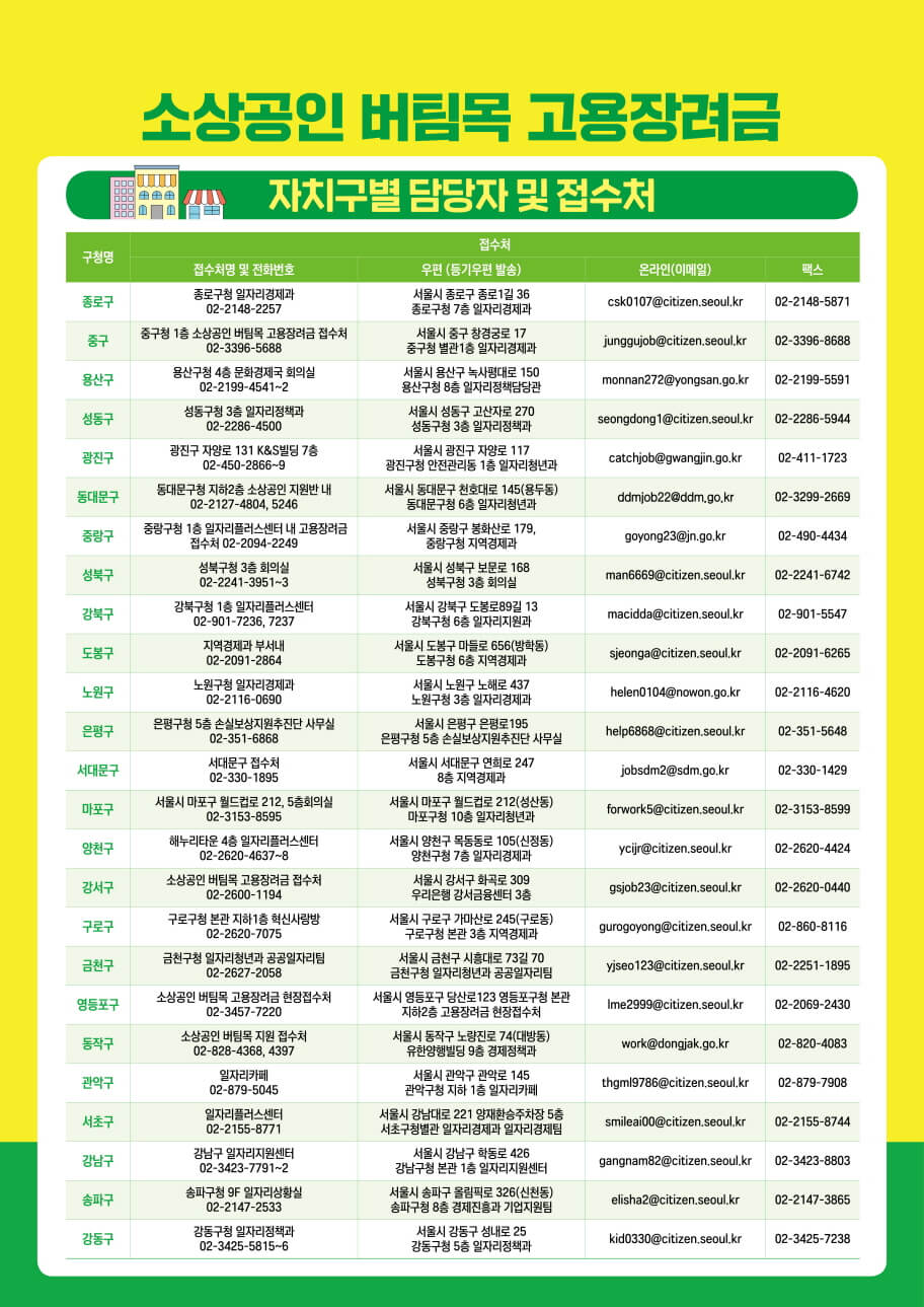 - 서울시소상공인버팀목고용장려금